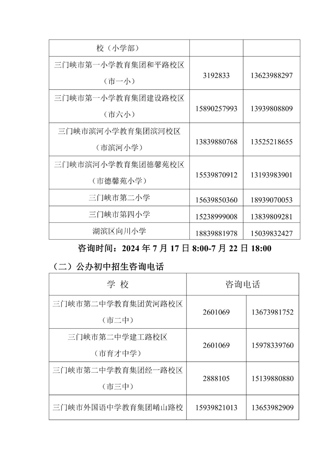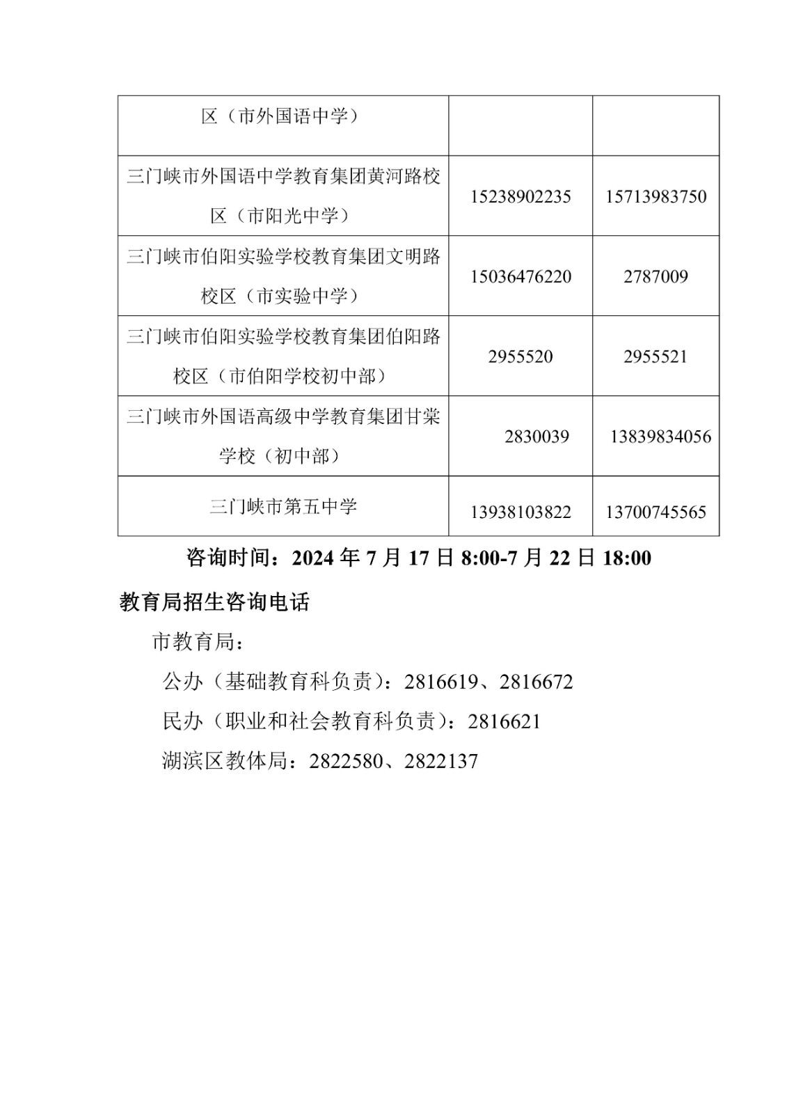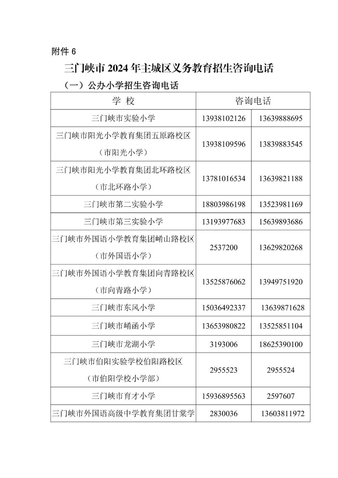 6.三门峡市2025年主城区义务教育招生咨询电话