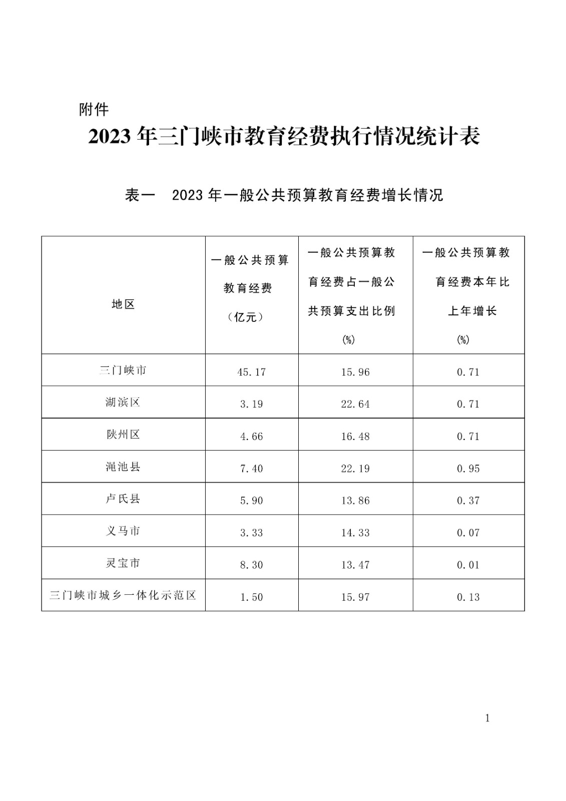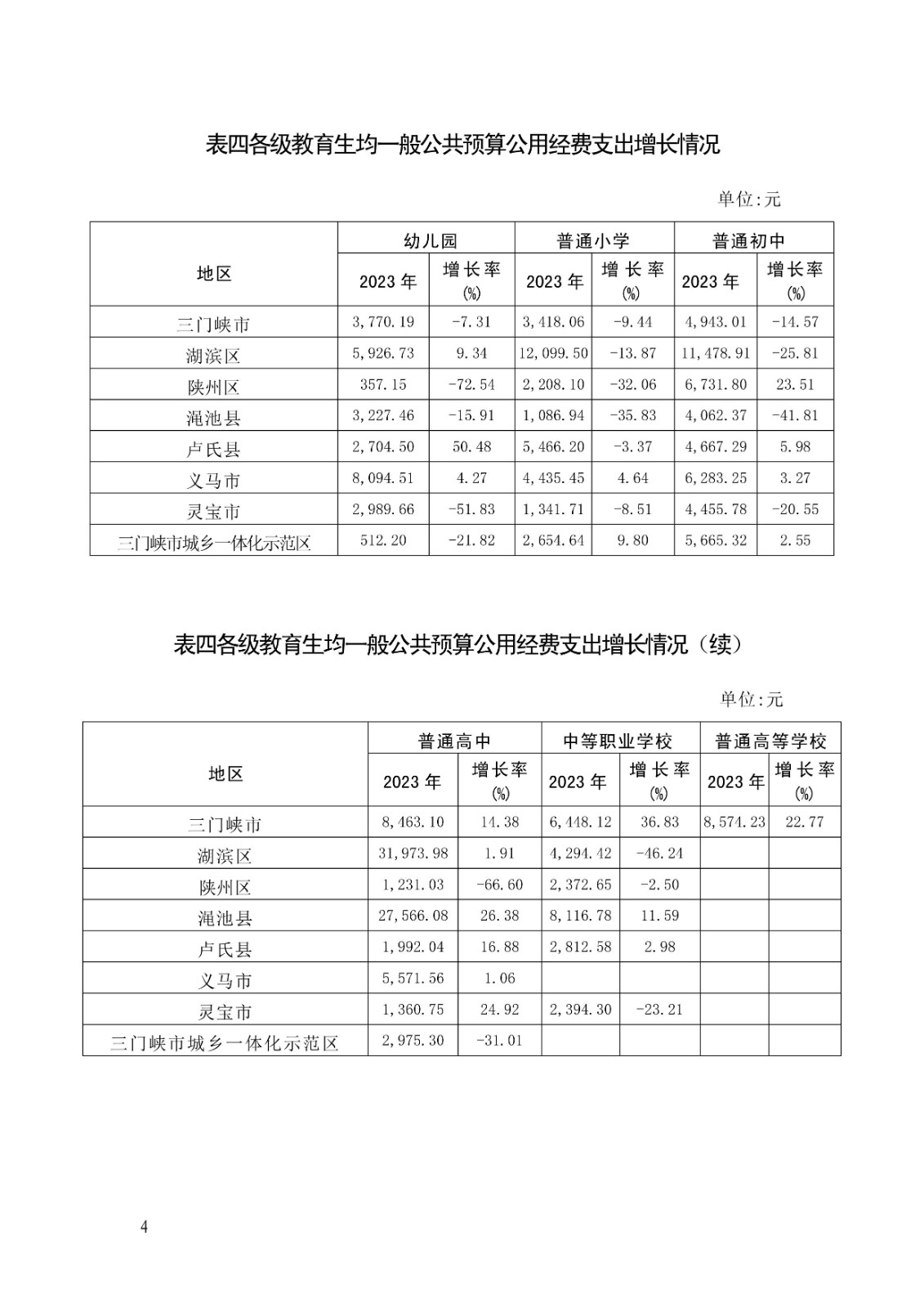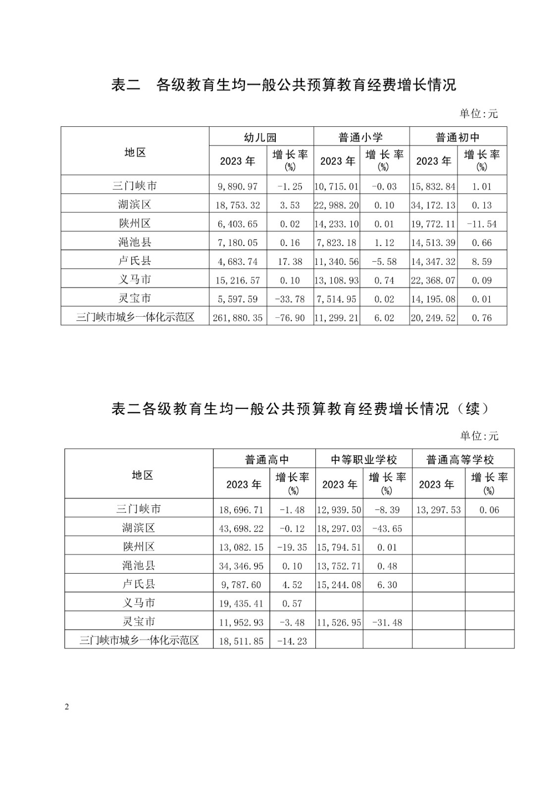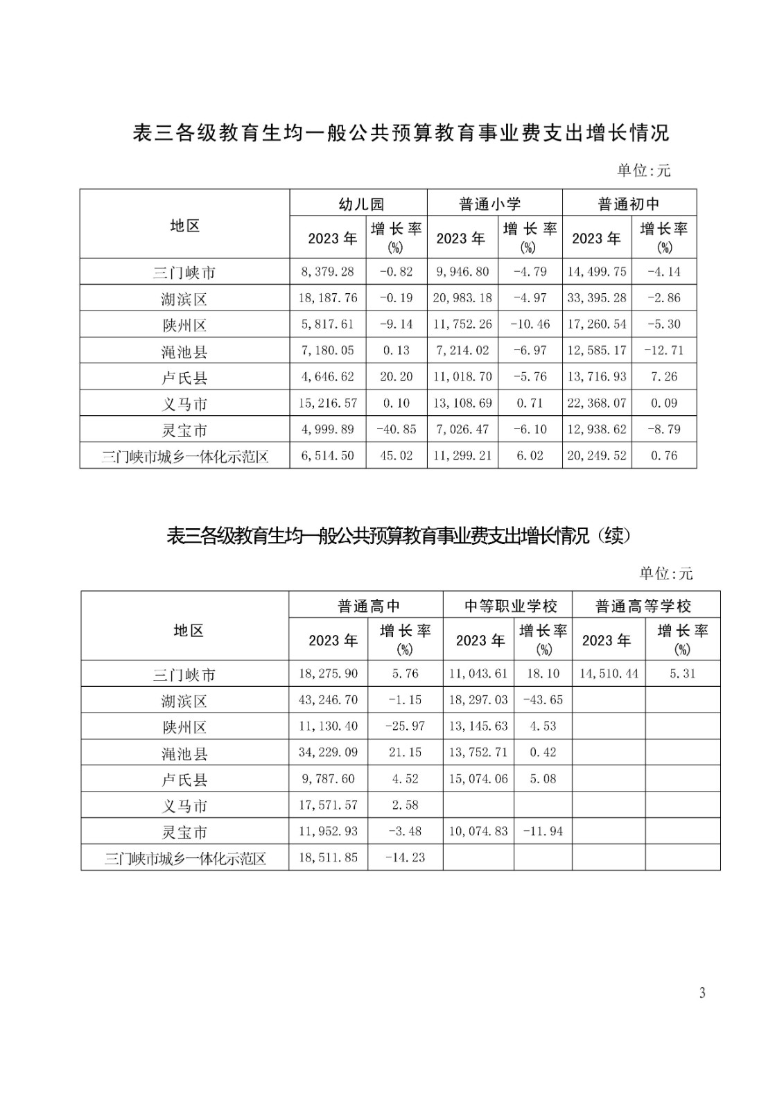 三门峡市教育局 三门峡市统计局 三门峡市财政局关于2023年全市教育经费执行情况统计